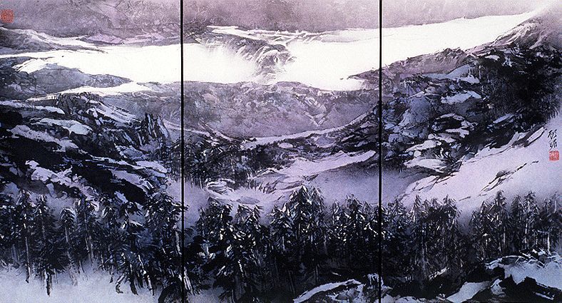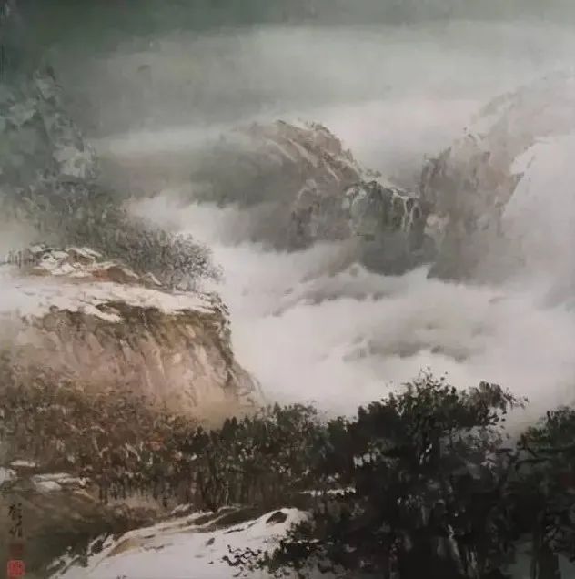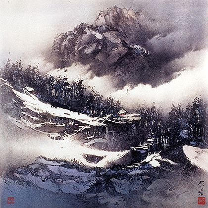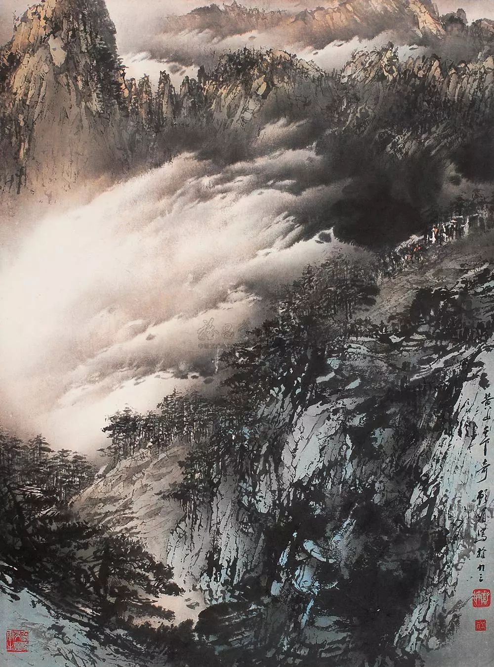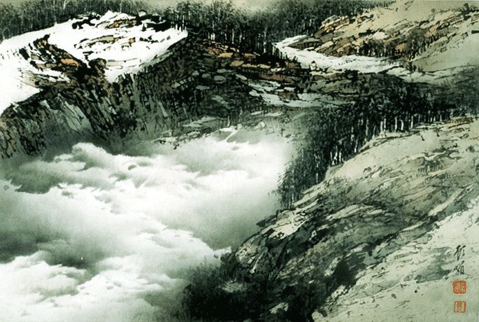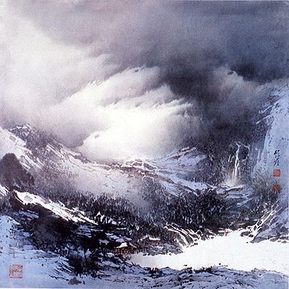 当时中国大陆还未正式开放,出生在中国的我,连自己的家乡都未见过,更遑论气势磅礡的名山大川。对于喜爱绘画山水的我,无法放开怀抱。吕老师教导我们自己创立一种皴法来表达自己的作品,同时给我们灌输一些现代艺术的知识,鼓励我们自由发挥。当我正很投入的时候,老师不幸去世。我在此时加入了老师有份创办的一画会。顾名思义,“一画会”的“一画”(亦称一划),是明末四画僧之一的《石涛画语录》的第一章第一句:“法于何立,立于一画”。